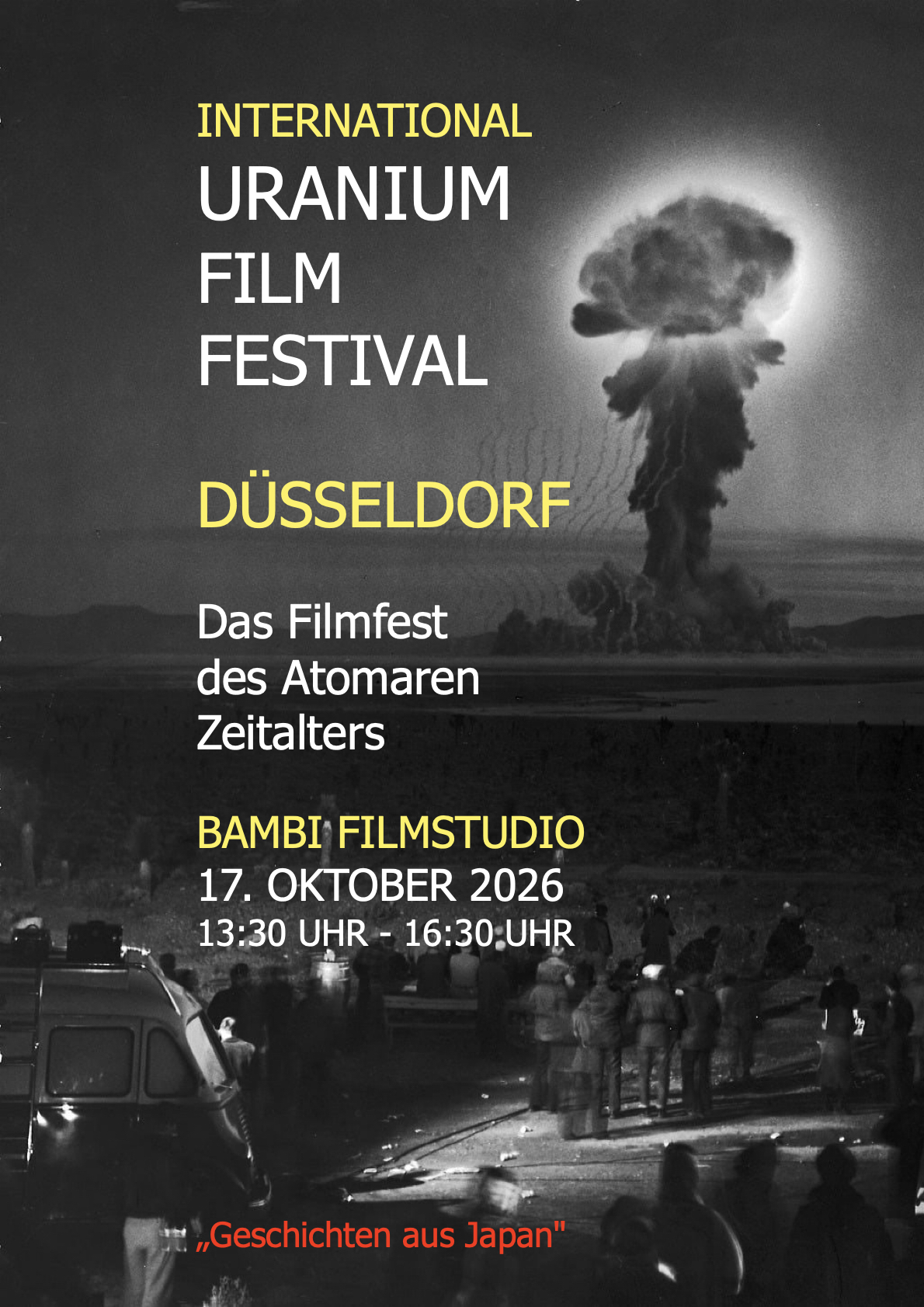 Since 2013 the International Uranium Film Festival has also become a respectfully event in Düsseldorf in Germany, organized by Japanese Makiko Hamaguchi-Klenner, Emeritus Professor at the Faculty of East Asian Studies at Ruhr University Bochum. Makiko is the festival’s consultant for Chinese and Japanese films and member of the IUFF Jury. This year we intend to show in Düsseldorf seven remarkable films on Hiroshima, Nagasaki, Hibakusha, Nuclear Weapons and Fukushima. Venue: Bambi Filmstudiio. Date: October 17, 2026.